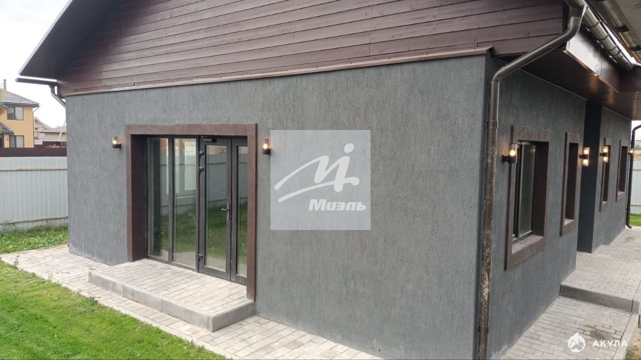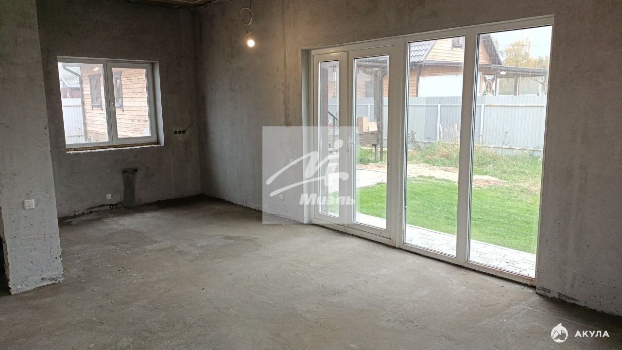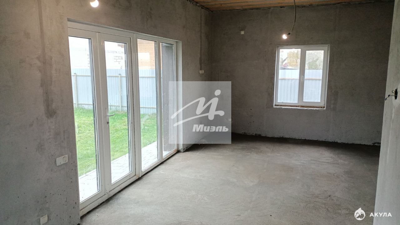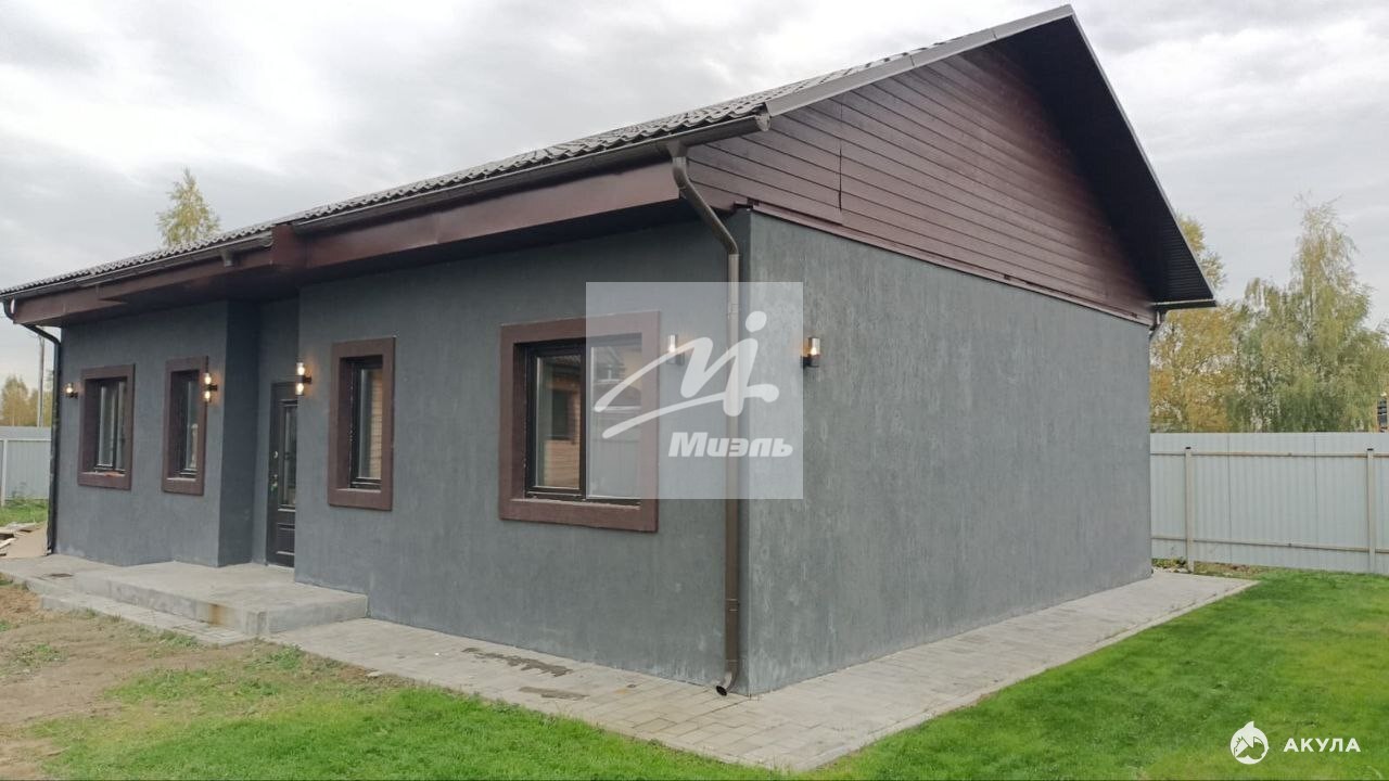 Одноэтажный жилой дом 2023 года постройки, возведённый из газоблока «Бонолит D400» (толщина стен — 400 мм), общей площадью 86 кв. м (по полу). В доме выполнены все наружные фасадные работы, смонтировано освещение и водосток, сделана отмостка здания. Три изолированные комнаты и просторная кухня‑гостиная с отдельным панорамным выходом на улицу, два санузла.