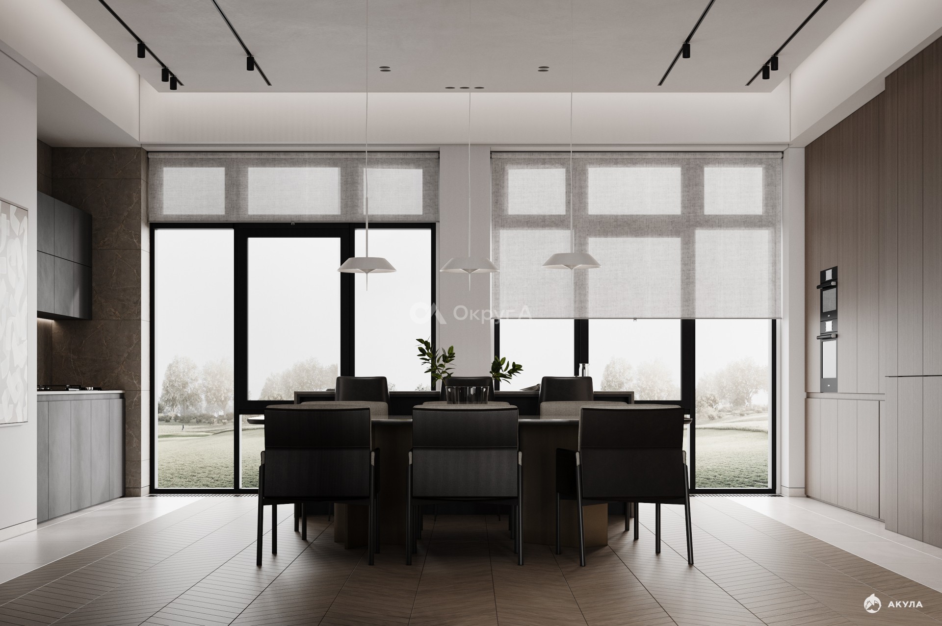 Все дома выполнены в едином современном архитектурном стиле.